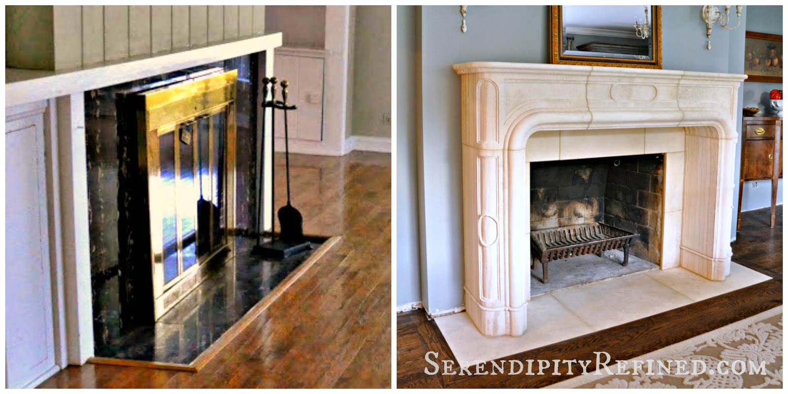 Serendipity Refined Blog French Replica Limestone Fireplace
