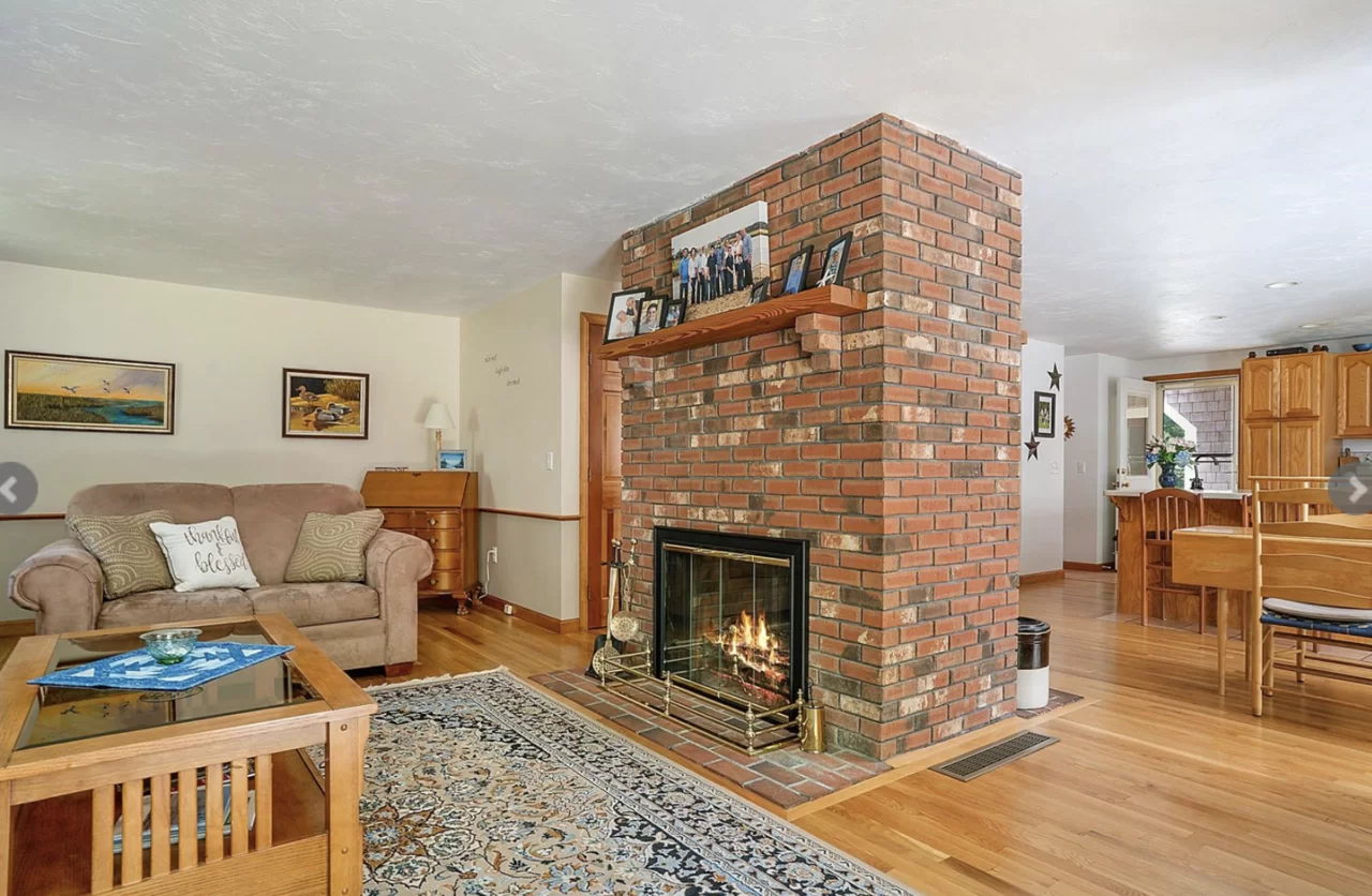 3 Sided Stone Fireplace With Wood Mantle In This Ldk Lower Level Basement Fireplace Fireplace Fireplace Remodel
