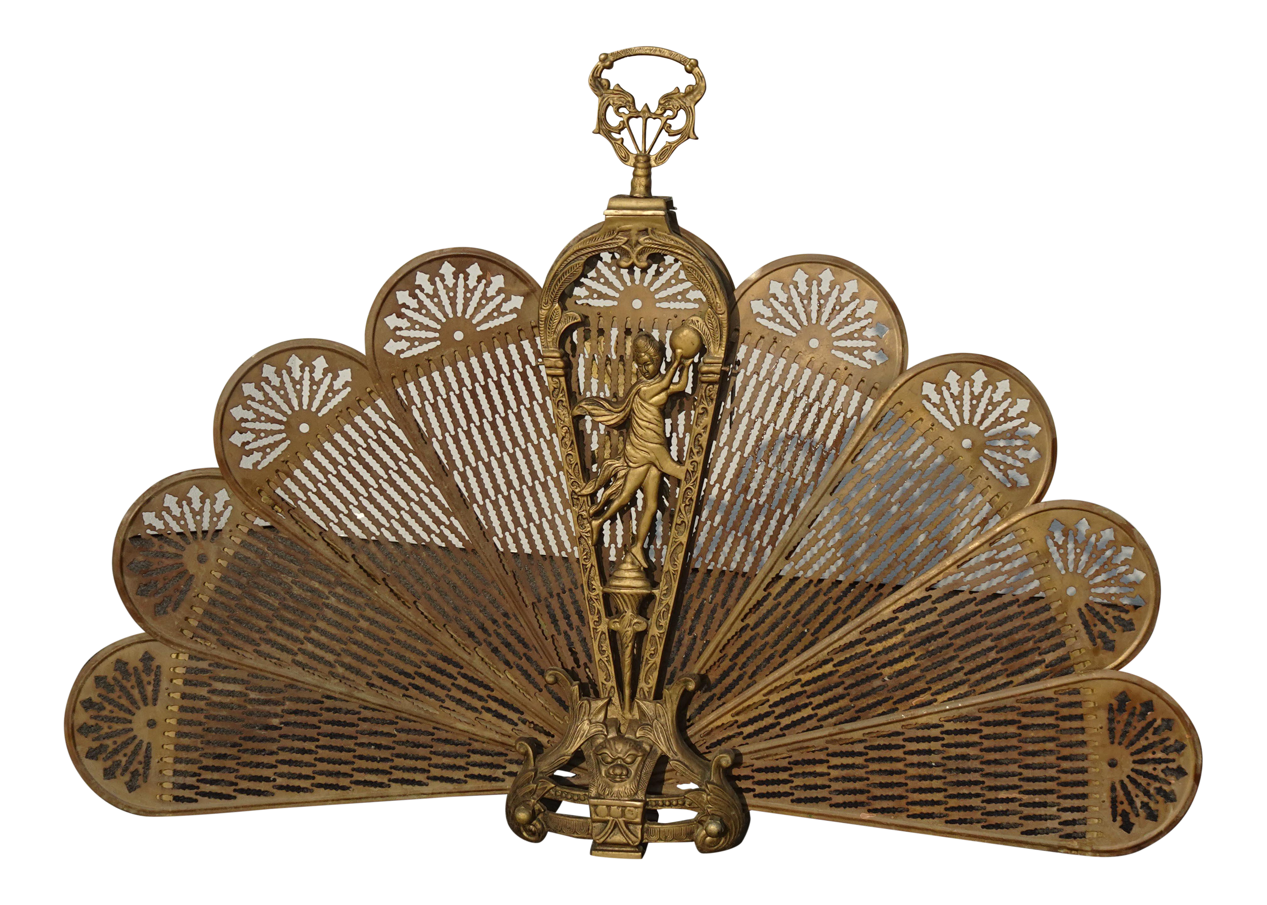 Vintage Brass Gargoyle Fan Fireplace Screen Griffin Peacock Catawiki