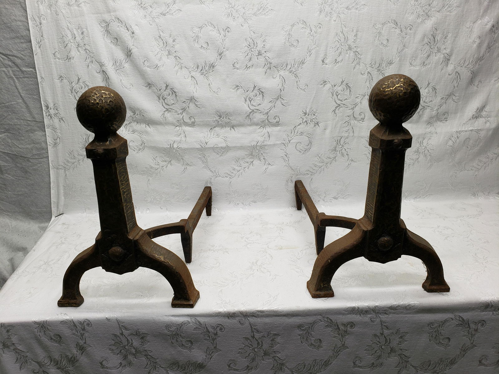 Lot Art Antique Arts Crafts Cast Iron Fireplace Andirons