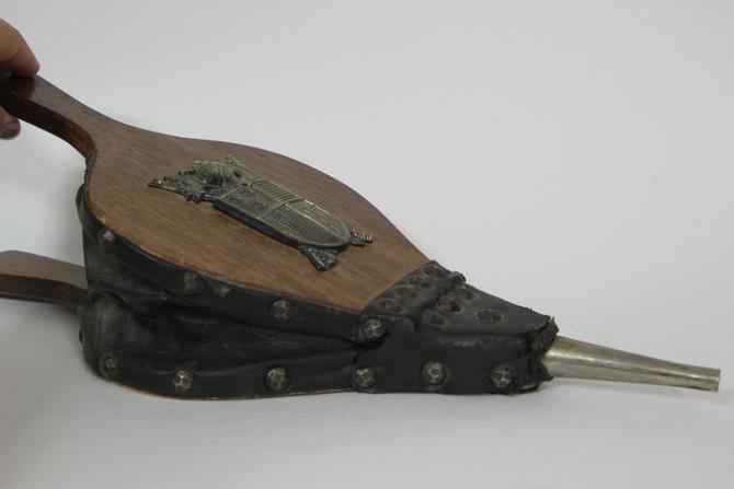Most of the fireplace bellows made of wood leather and brass that we find in antiques shops today are rarely earlier than 18th century and most are no older than the 19th. A very rare pair of federal carved fire bellows attributed to samuel mcintire salem circa 1800. Vintage fireplace bellows brass leather wood g8.