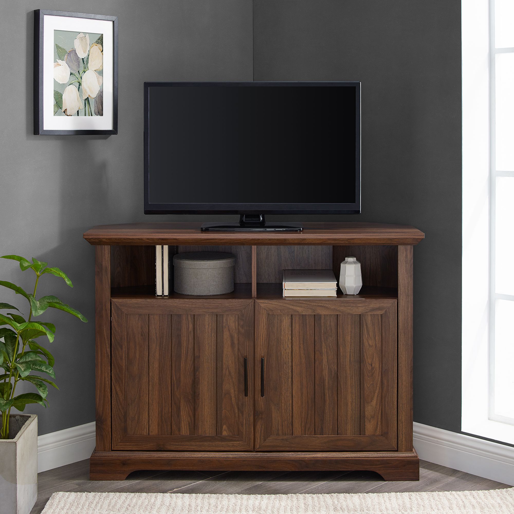 W Trends Grooved Door Corner Tv Stand 44 Bjs Wholesale Club