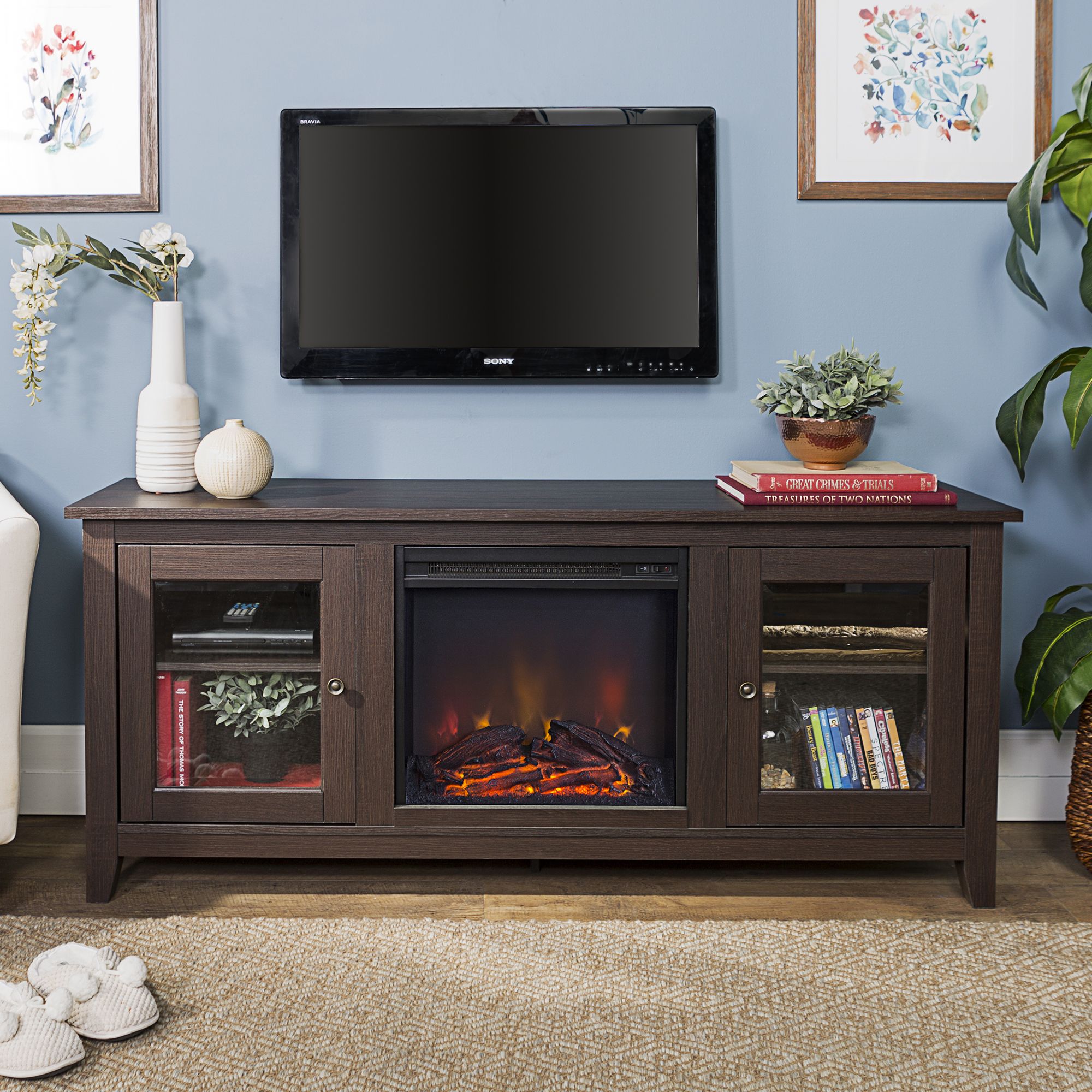60 W Trends Lowell 2 Door Fireplace Tv Stand Bjs Wholesale Club