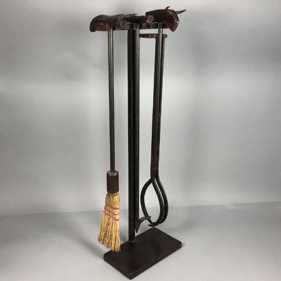 190521 136 Heavy Blacksmith Made Iron Fireplace Tools 3 Figural