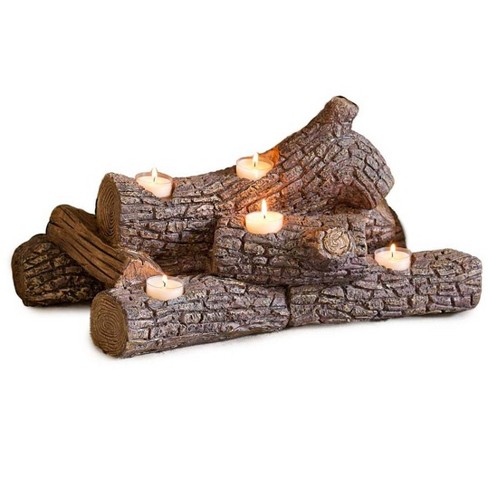 Buy Regal Flame Tealight 24 Fireplace Log Candle Holder Insert Rustic Wood Finish By Clickhere2shop Store On Opensky