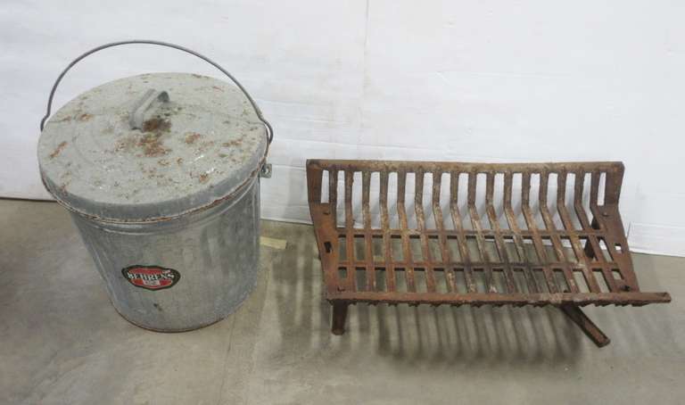 Used Antique Cast Iron Fireplace Basket Grate Coal Box Wood Log