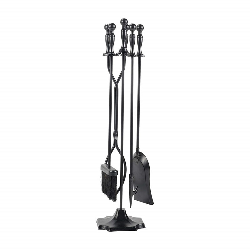 Uniflame Black Cast Iron 5 Piece Fireplace Tool Set With Ball