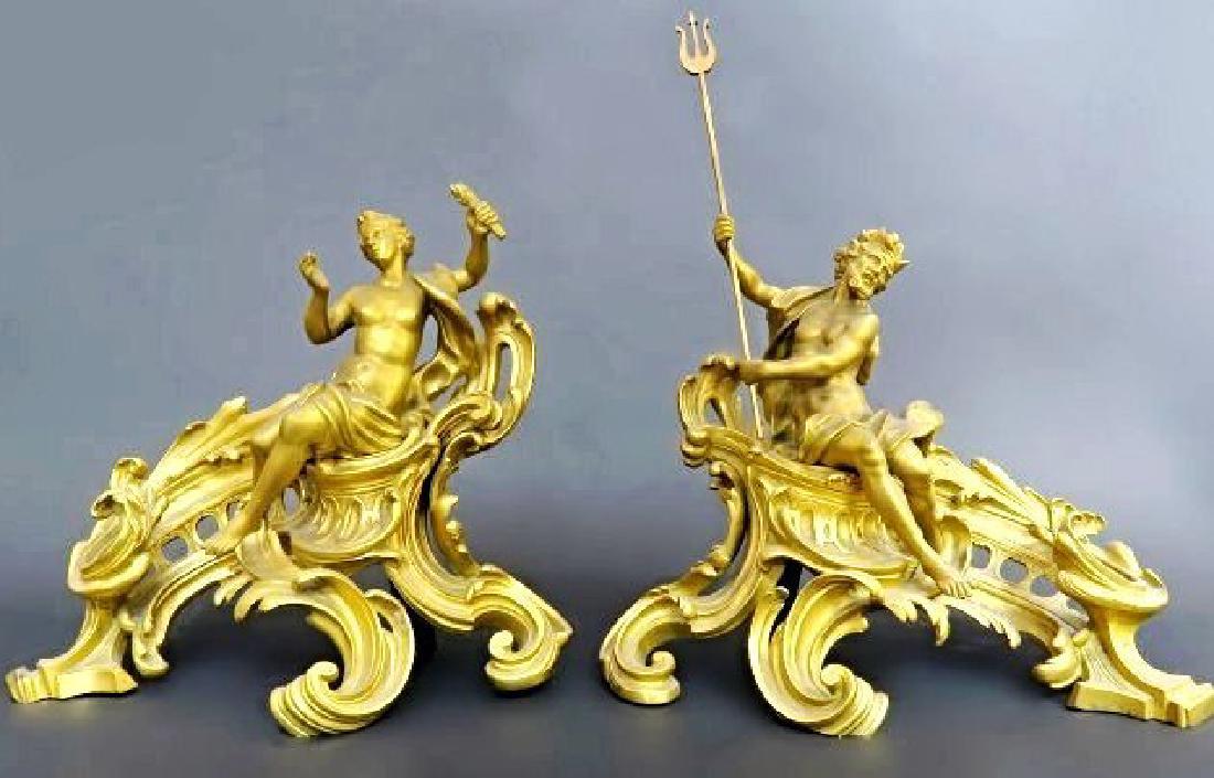 Helios Auctions French Gilt Bronze Fireplace Mantel Chenets 19