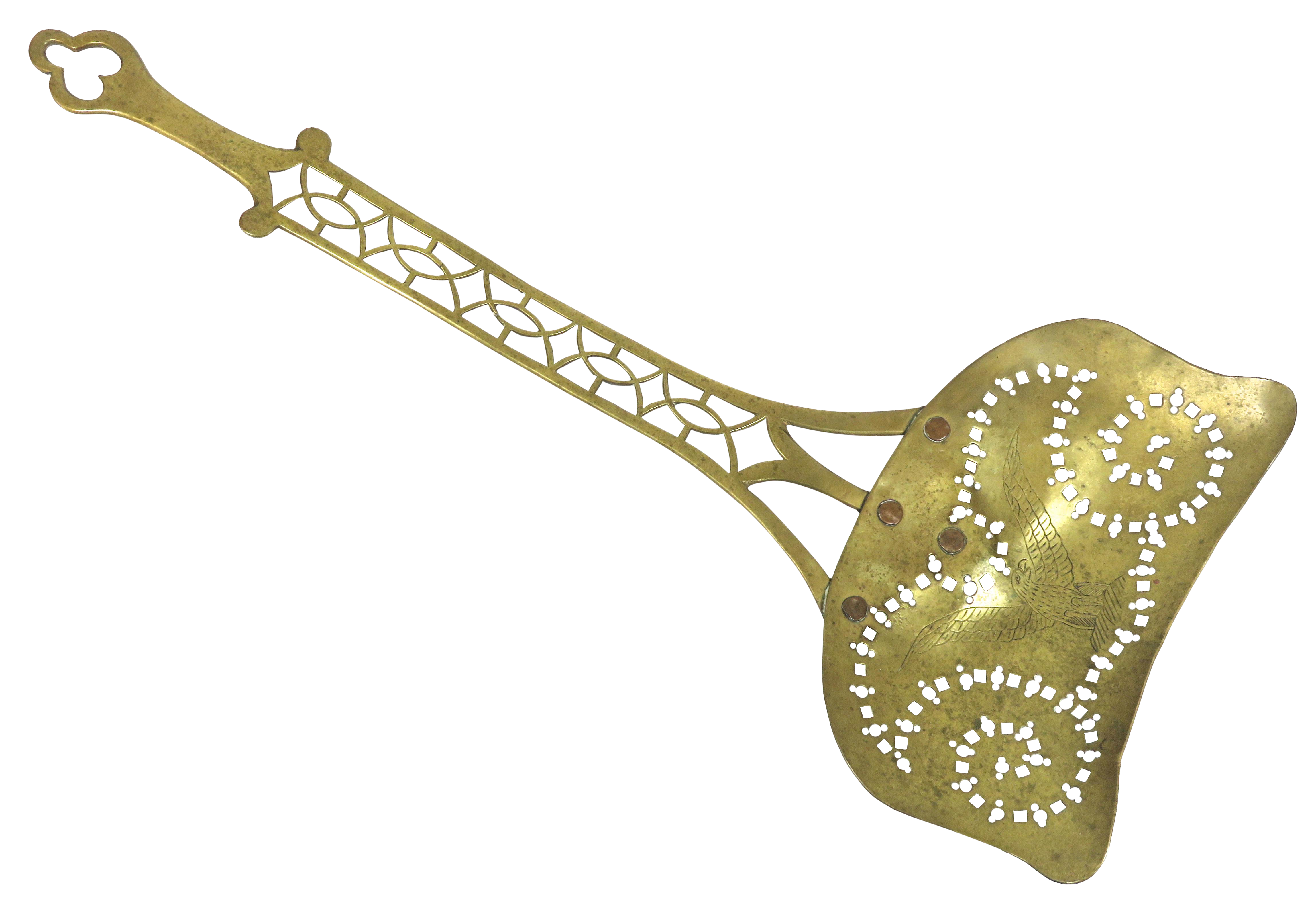 Vintage Brass Skimmer Paddle Chestnut Roaster Fireplace Hearth