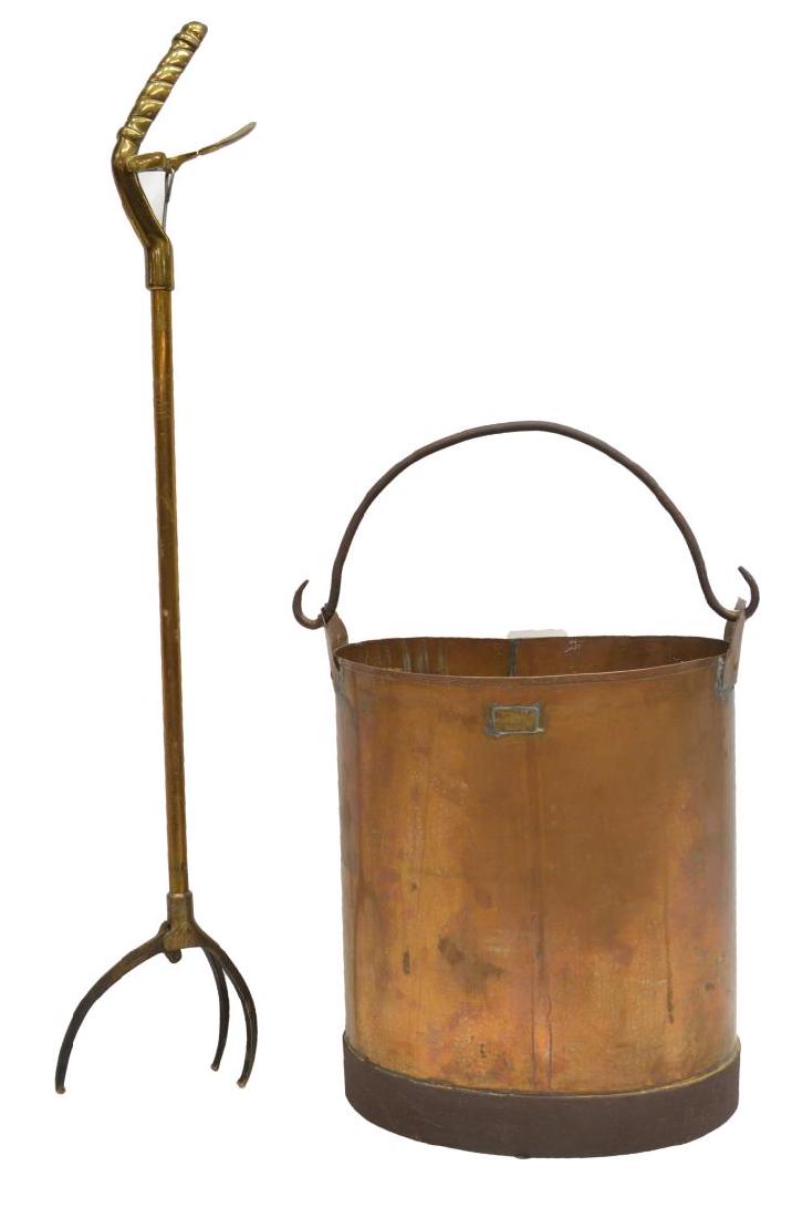 An Indian Brass Fireplace Poker With Copper Scuttle Bucket Lot