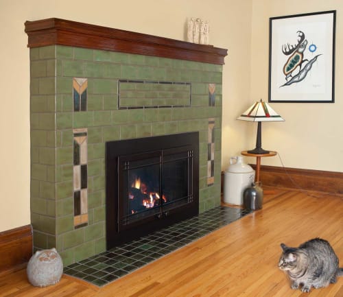 A Craftsman Fireplace Ceramic Handmade Tiles