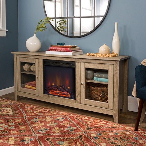 58 Cozy Glass Door Fireplace Tv Stand Driftwood Saracina Home Target