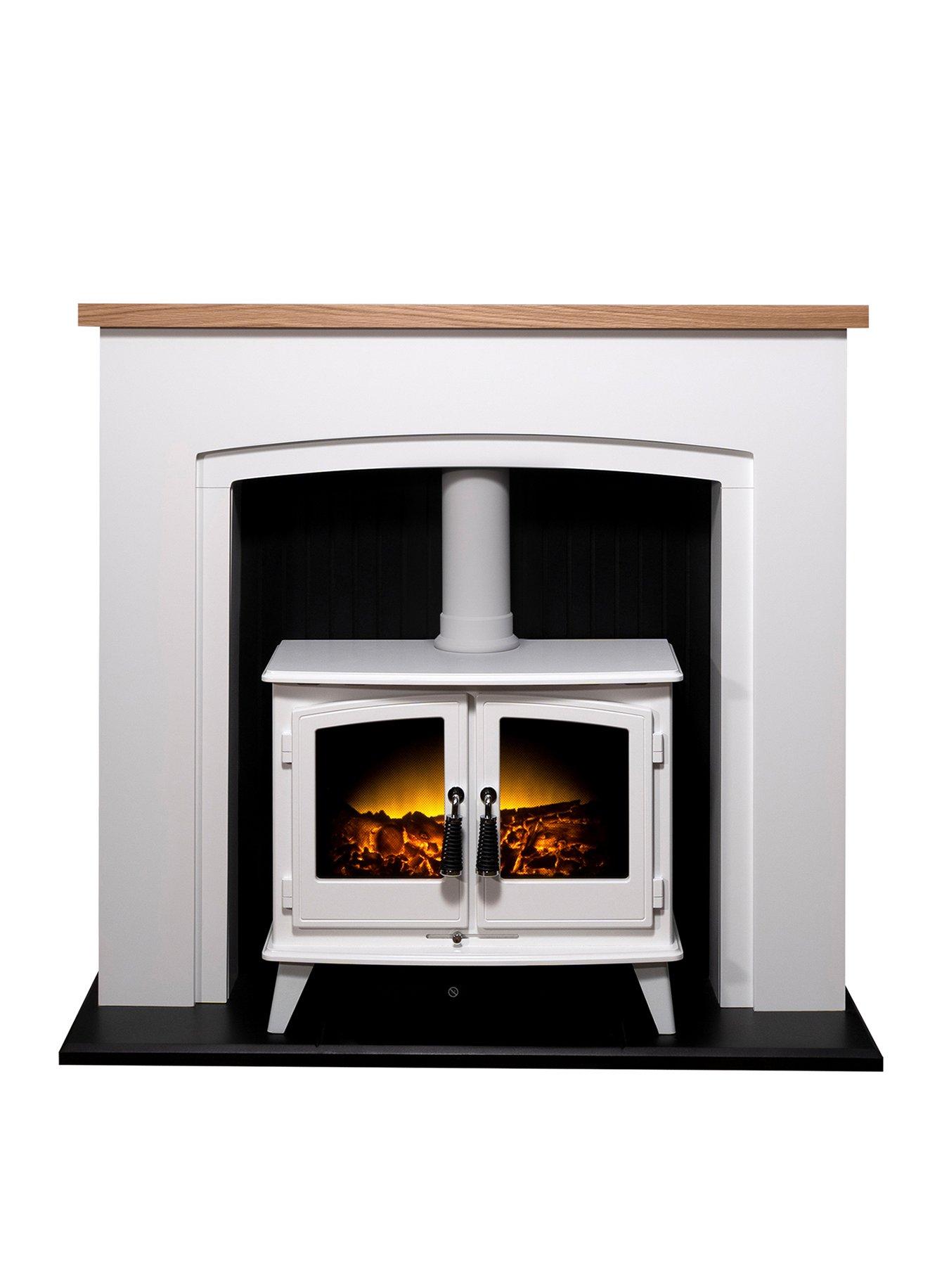 Warmlite Newcastle Electric Fireplace Suite Adjustable Thermostat And Led Flame Effect Traditional Stove Design White Amazon Co Uk Kitchen Home
