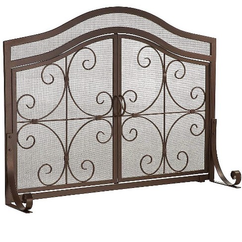Plow Hearth Small Crest Fireplace Fire Screen With Doors 38