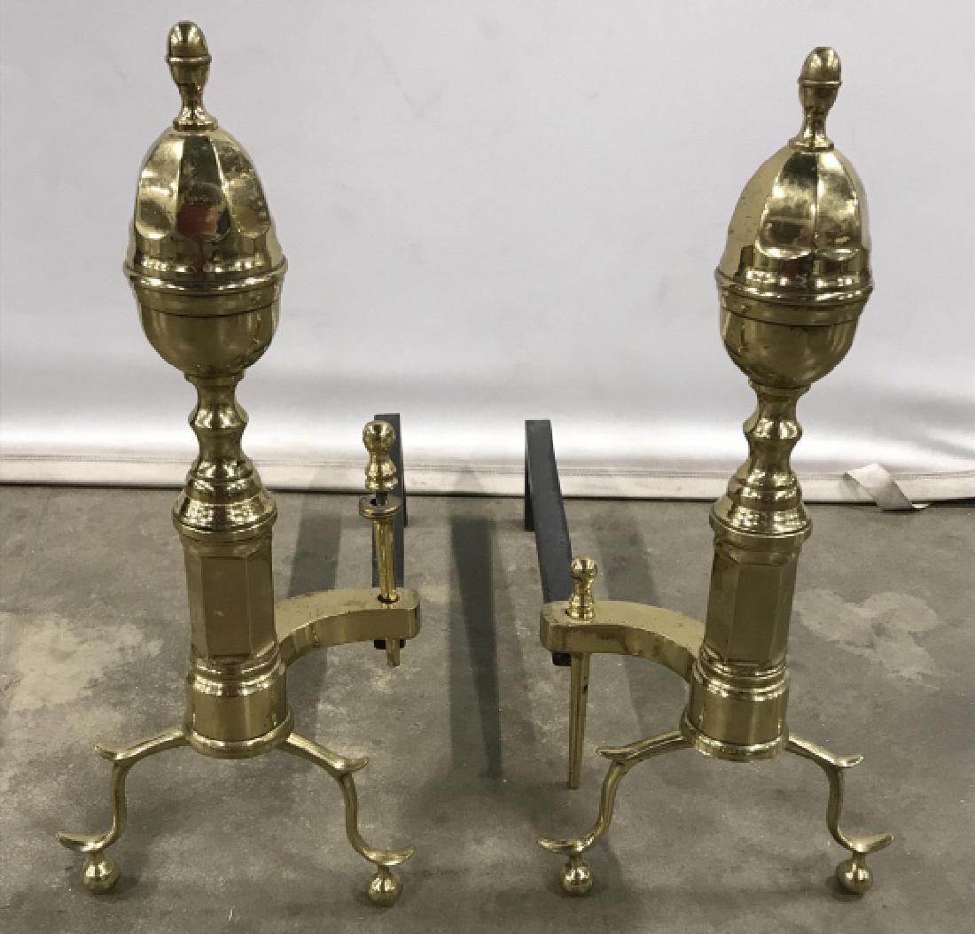 A Pair Of Federal Style Polished Brass Fireplace Andirons And