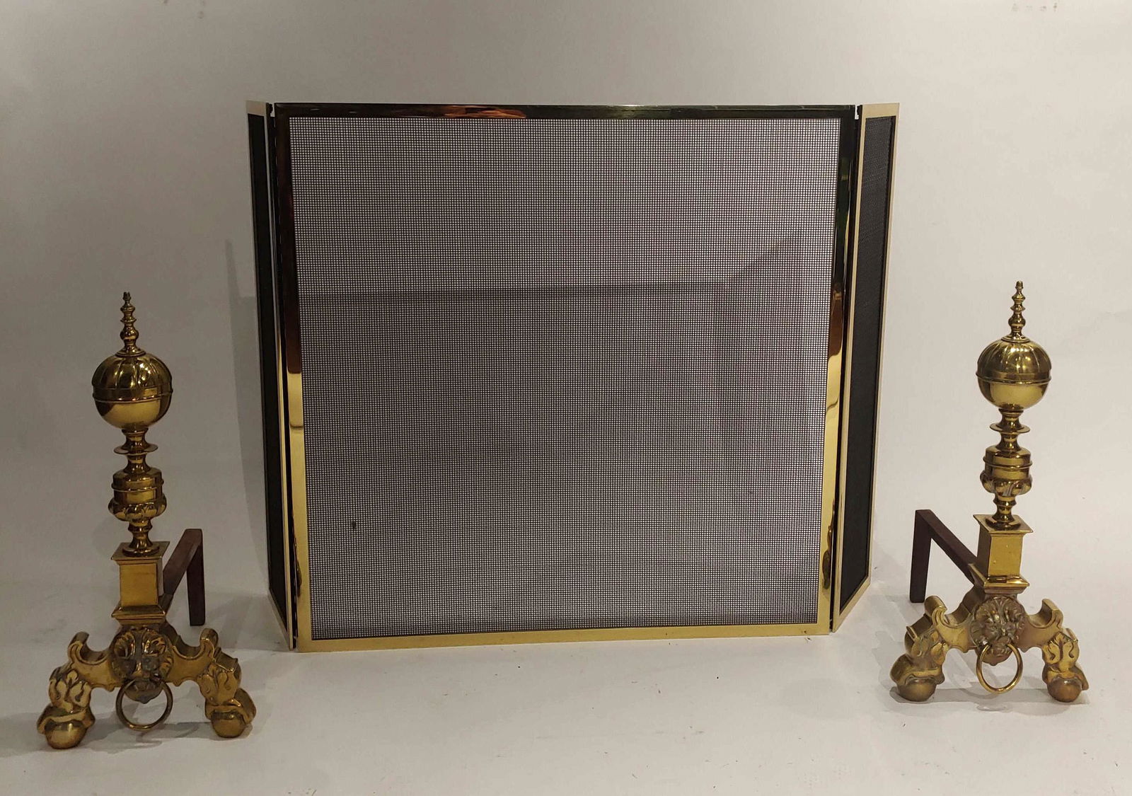 Brass Iron Fireplace Andirons And Brass Screen Feb 24 2020