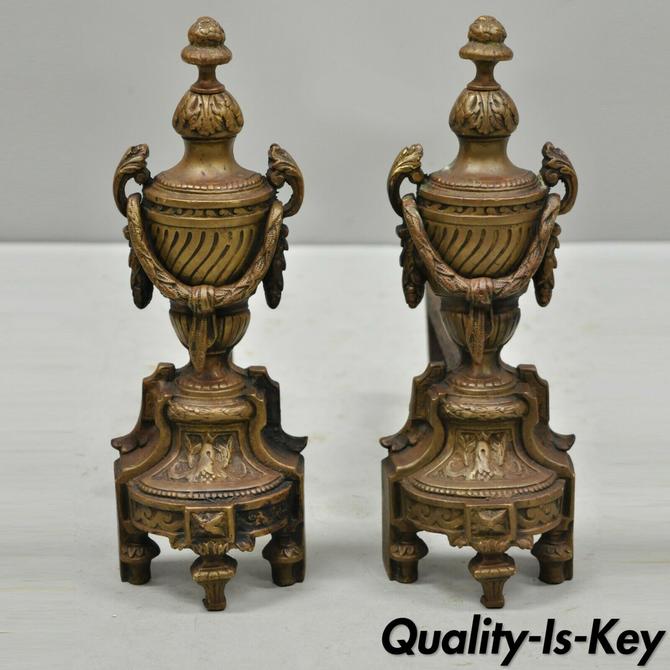 805039 Pair Of Antique Neoclassical Fireplace Andirons