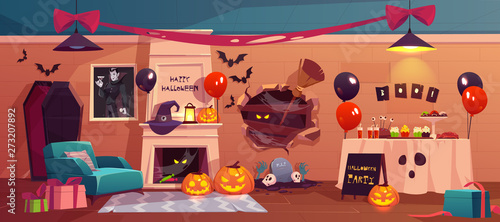 Halloween Interior For Party Celebration Empty Scary Vampire Room