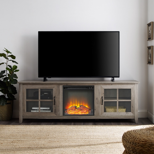Gray Washed Media Cabinet With Fireplace Kirklands