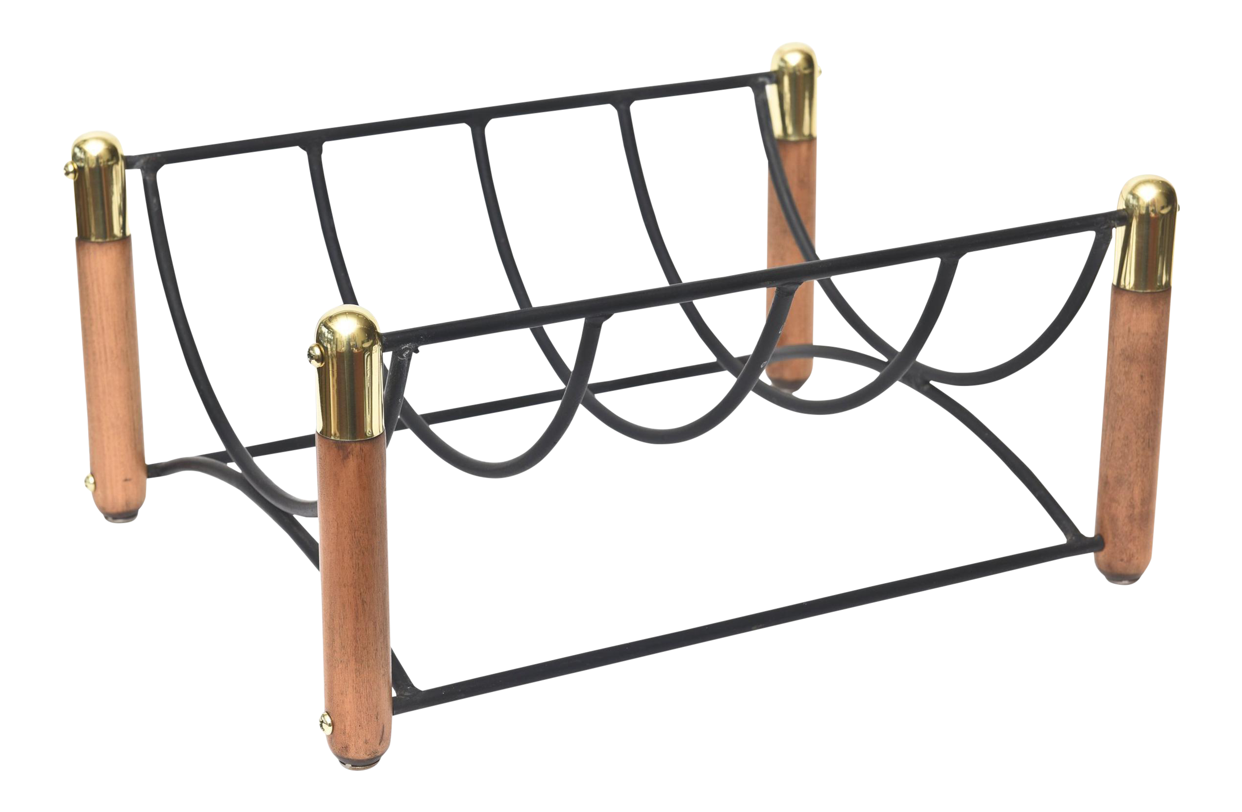 Mid Century Modern Wood Iron And Brass Magazine Or Fireplace Log Rack Chairish