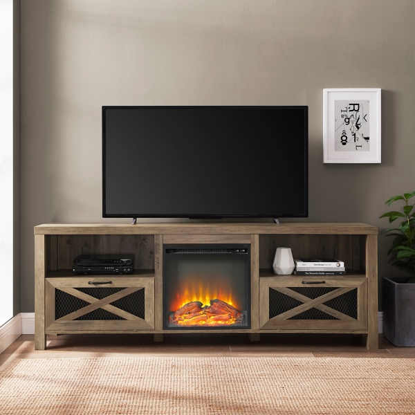 Barnwood X Door Media Cabinet With Fireplace Kirklands