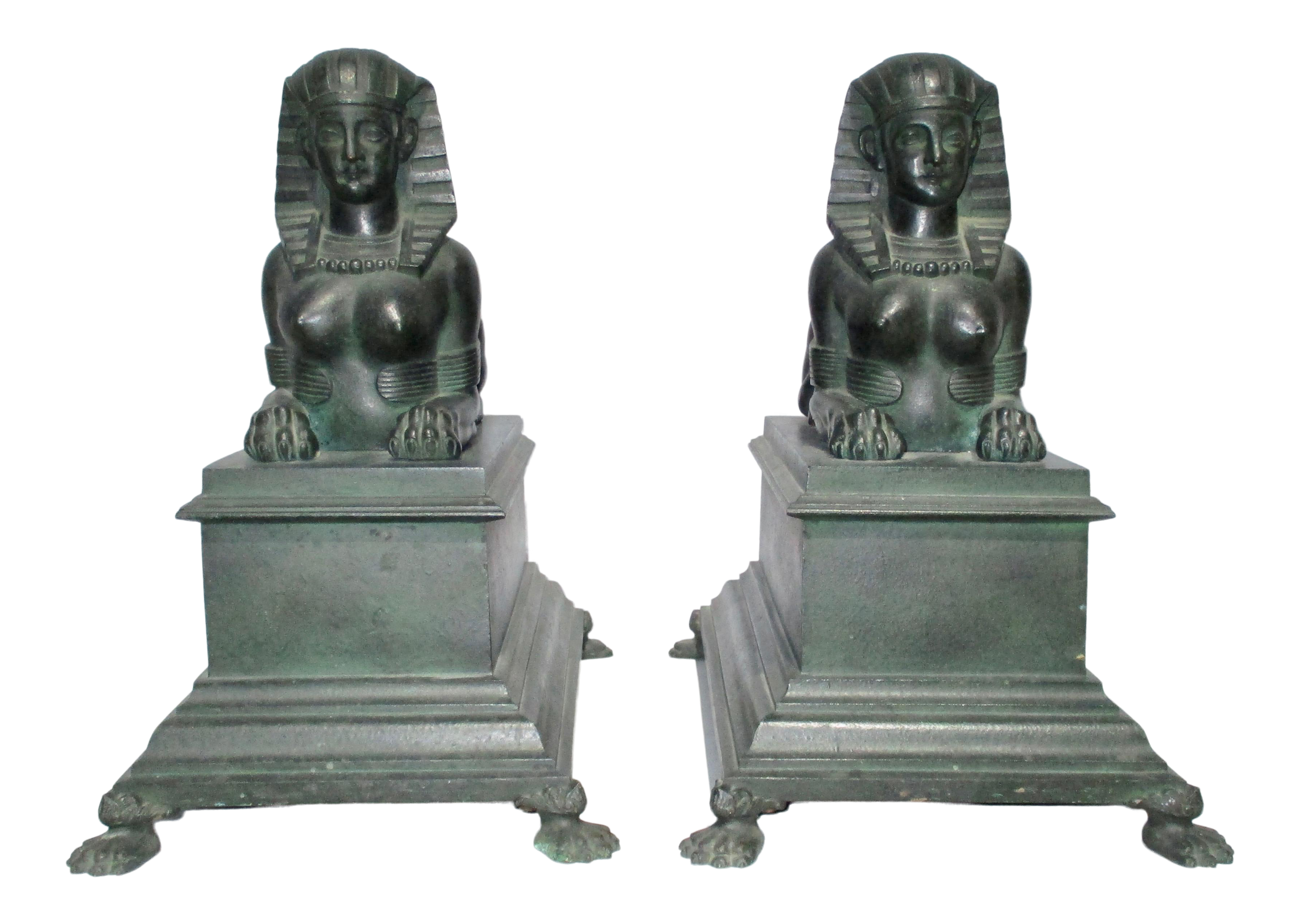 Late 19th Century Vintage Patinated Bronze Sphinx Statues A Pair