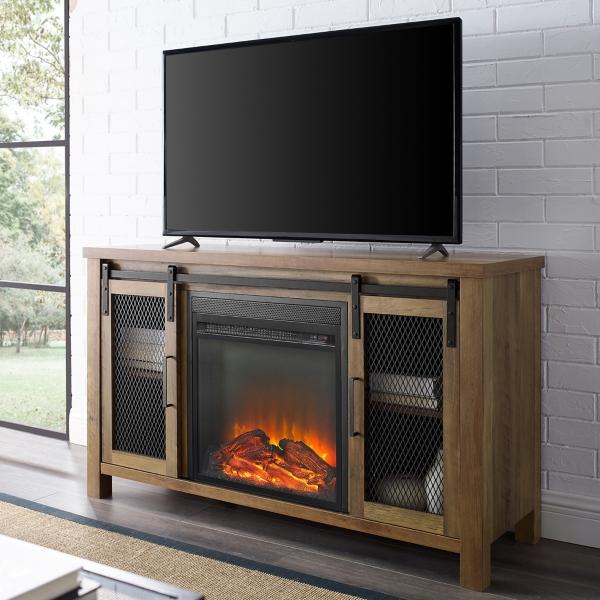 Rustic Oak Media Cabinet With Electric Fireplace Kirklands