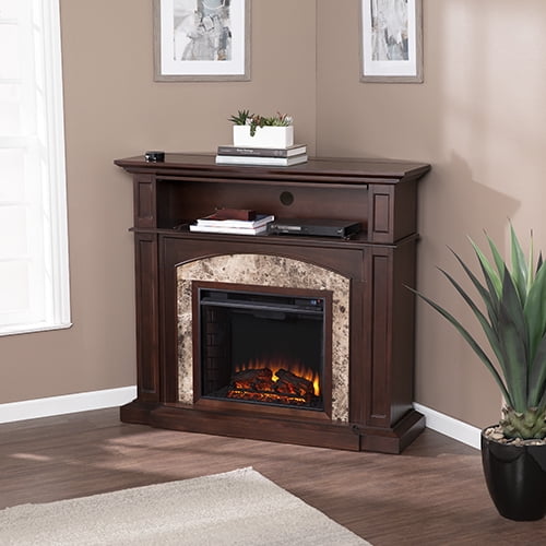 Kellway Electric Media Fireplace W Marble Surround Espresso Walmart Com Walmart Com