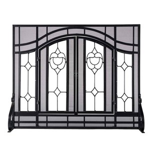 Solid Steel Classic Flat Guard Fire Screens With Doors Fireplace