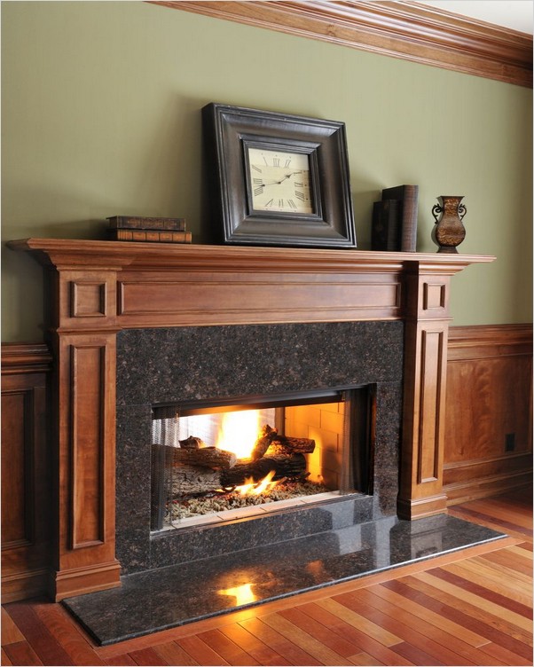 Raised Paneled Fireplace With Granite Surround And Hearth