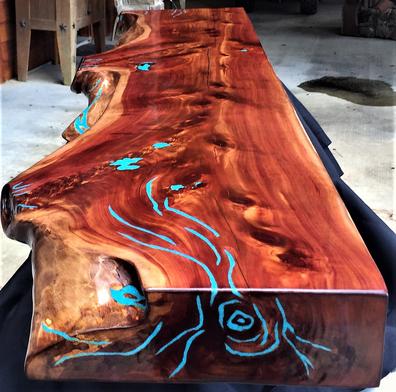 Mesquite Live Edge Fireplace Mantel Turquoise Inlay Etsy