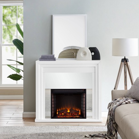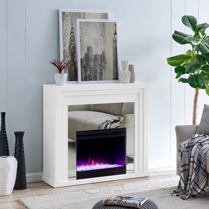 White Mirror Door Electric Fireplace Console Big Lots In 2020