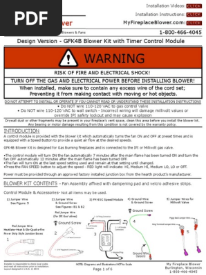 Gfk4b Gfk4 Fireplace Blower Fan Kit Installation Instructions Guide Electrical Connector Valve Free 30 Day Trial Scribd