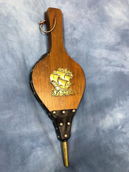 Vintage Wood Brass Black Leather Studs Fireplace Blower Bellows