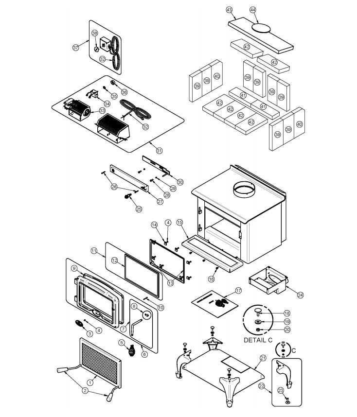 Osburn 1800 Wood Stove Parts Diagram