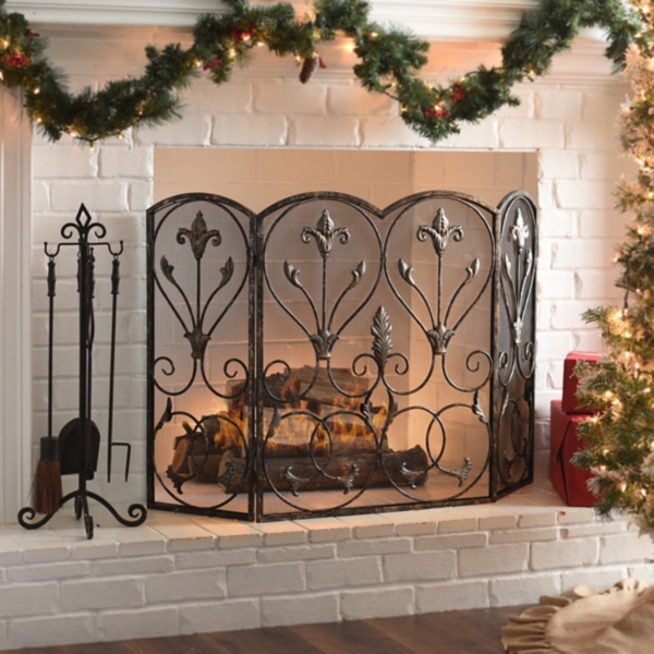 3 Panel Wrought Iron Fireplace Screen Heavy Duty Folding Fire