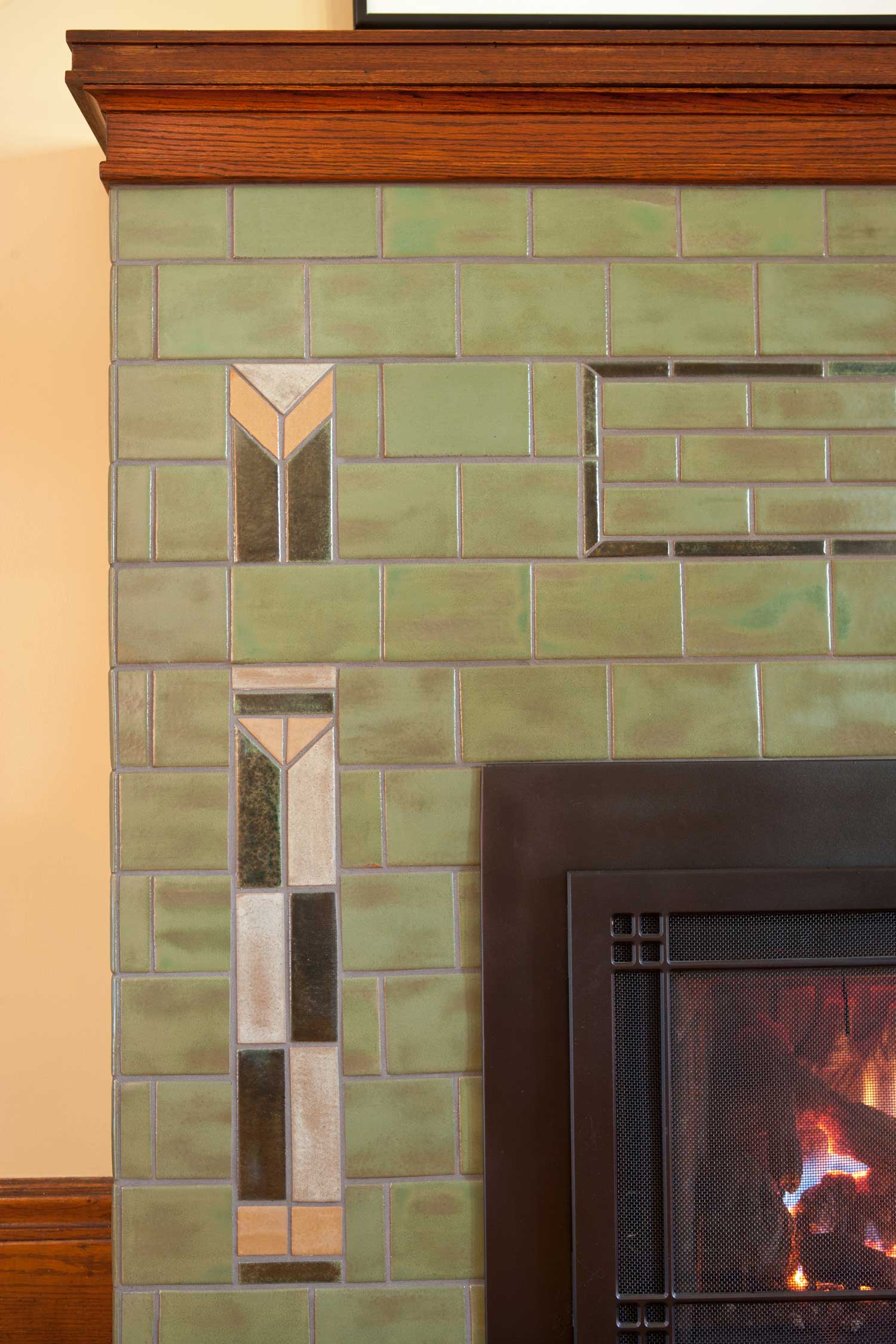 Prairie Arts Crafts Fireplace Restoration Emulating Stained Glass