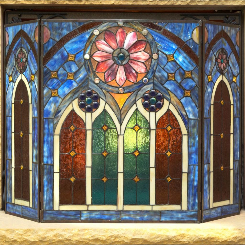 Shop Tiffany Style Stained Glass Fireplace Screen Overstock