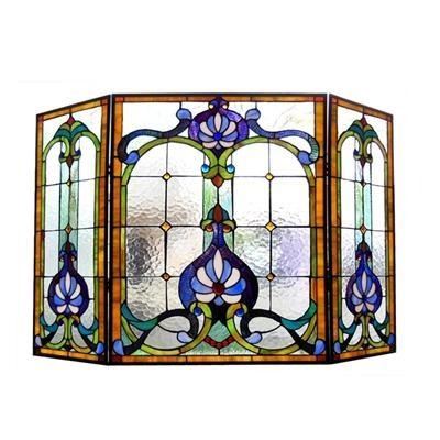 Tiffany Style Stained Glass Folding Fireplace Screen