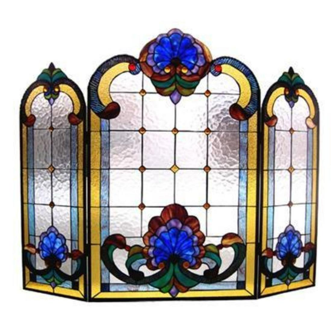 Tiffany Glass Victorian 3pcs Folding Fireplace Screen 44 Wide
