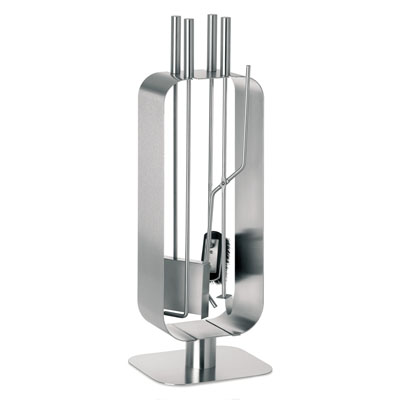 Blomus Stainless Steel Fireplace Tools Stand 5 Pc Set Holder Organizer