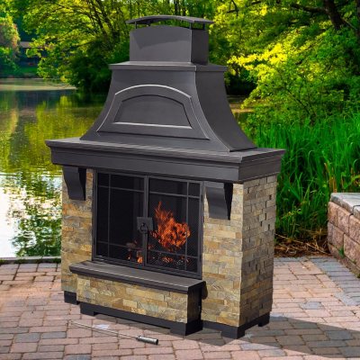 Sunjoy Brownston Steel Wood Outdoor Fireplace With Images