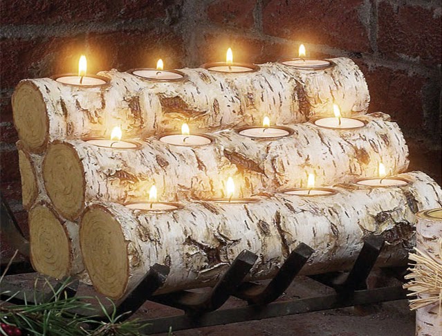 Candleholders That Look Like Birch Logs Holding Replaceable