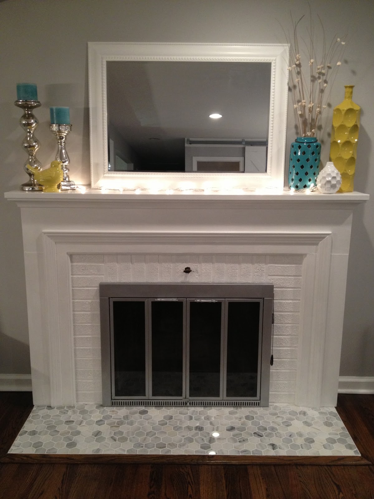 Fireplace Makeover Tiling The Mantel With Marble Herringbone