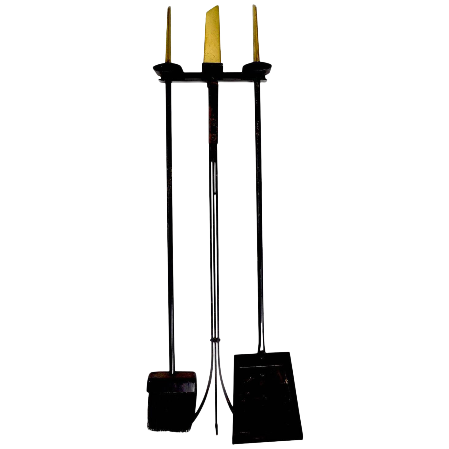 Mid Century Modern Iron Brass Wall Mounted Fireplace Tool Set