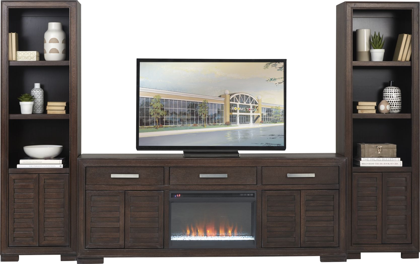 Cates Ridge Tobacco 3 Pc Wall Unit With Electric Fireplace Rooms