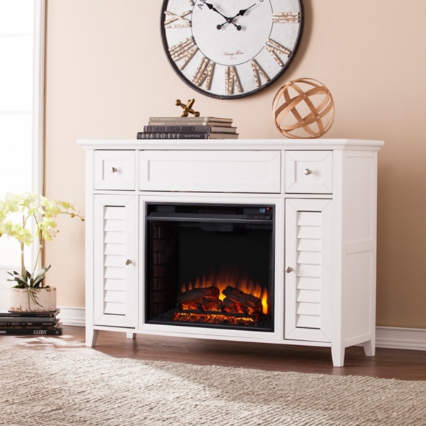 Southern Enterprises Belranton Widescreen Media Console Electric Fireplace With Storage In White Bed Bath Beyond